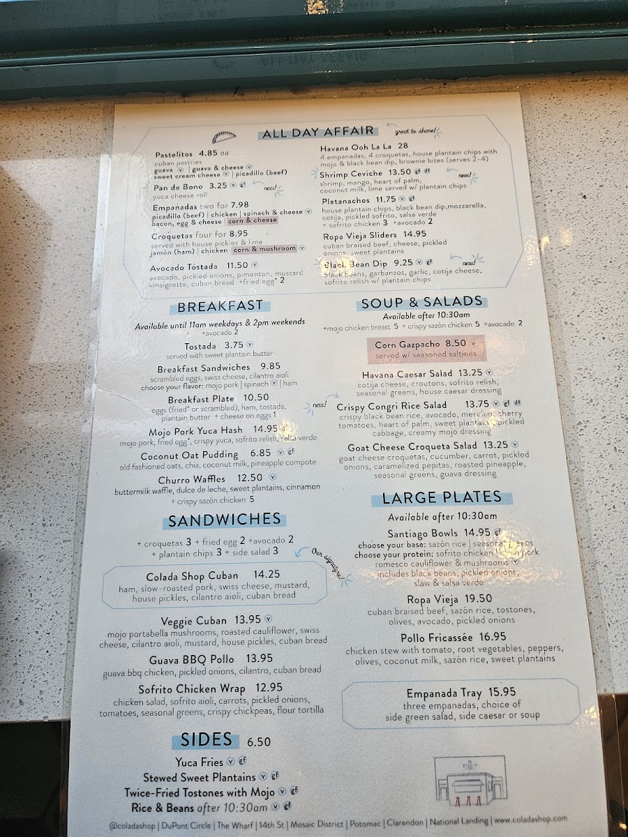 Welcome to Colada Shop - Washington, a vibrant eatery nestled in the heart of DC, where Cuban flavors come to life. Located at 10 Pearl St SW, this lively spot features a delightful menu that showcases both traditional and innovative recipes. A standout is the ¡Boniato Fall Menu!, which highlights the versatile boniato, or Cuban sweet potato.